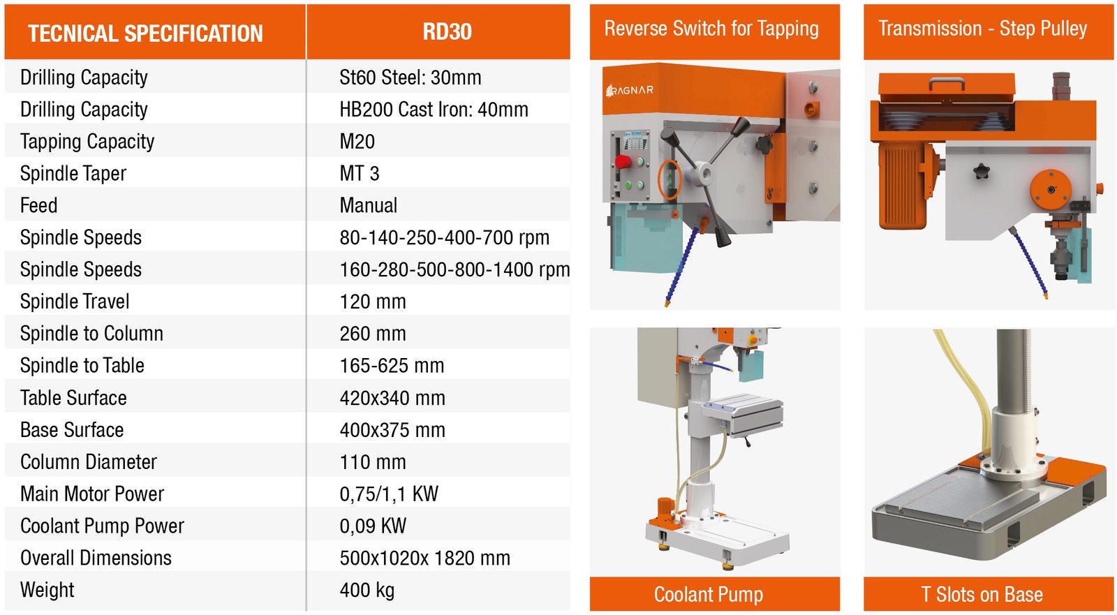 • Wide range of spindle speeds suitable for most application